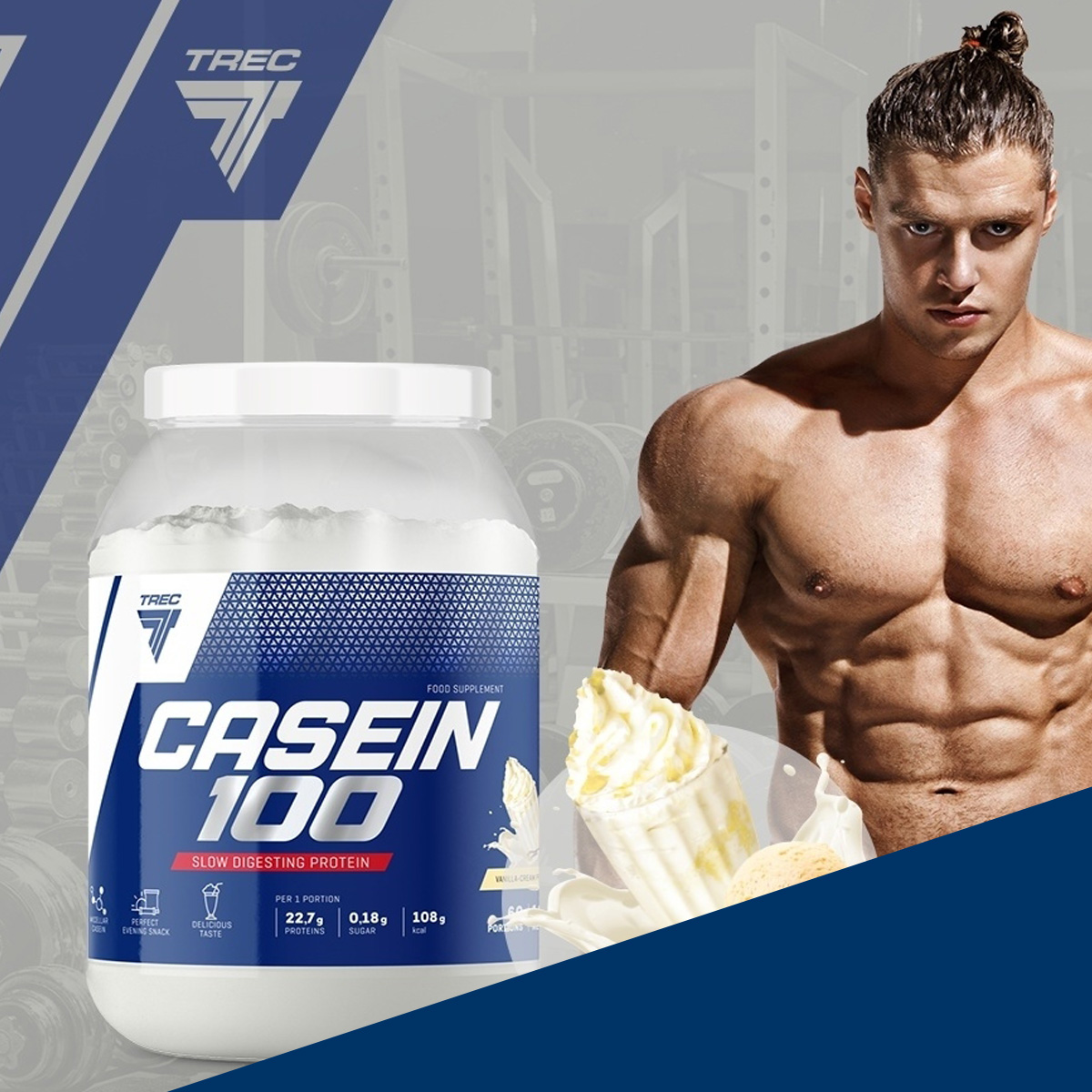 TREC Casein 100 chứa 100% micellar casein, đây là nguồn cung cấp protein sạch chất lượng cao với thời gian hấp thụ kéo dài. TREC Casein 100 cung cấp liên tục protein cho cơ bắp với tất cả các axit amin thiết yếu, bao gồm một lượng lớn BCAAs và L-Glutamine. Chống lại quá trình dị hóa cơ sau tập luyện và trong khi ngủ, kích thích tái tạo và phát triển các mô cơ. TREC Casein 100 là một chất bổ sung protein nguồn cung cấp chính cho cơ bắp lâu dài và có hệ thống với tất cả các axit amin chính. Micellar casein là dạng casein có khả năng sinh học cao nhất, được đặc trưng bởi cấu tạo axit amin giống với axit amin trong cơ thể, khiến nó trở thành nguồn xây dựng lý tưởng cần thiết cho quá trình tổng hợp protein cho cơ bắp. Casein 100 cung cấp một lượng lớn axit amin giải phóng dài và peptide ngắn giúp kích thích quá trình tăng trưởng, tái tạo và tăng miễn dịch cơ thể .
